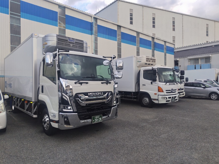 この車は 大阪府高槻市のセンターと岡山県総社市工場をピストン運航している車になります(うちの中では一番距離を走ります)